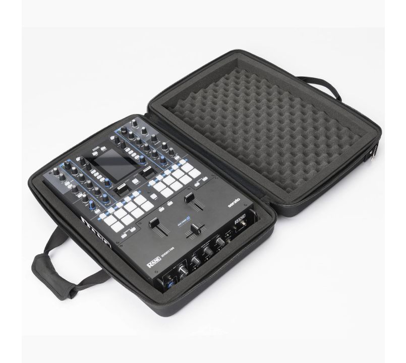 This CTRL case comes with a super-robust exterior hard-shell that is made of a 6mm moulded Durashock EVA material and polyester that is resistant to water, impacts, and scratches. The inside of the case is lined with removable egg crate foam that works to protect the knobs and faders while an optional foam panel keeps the crossfader and channel fader safe and secure at all times. The case can fit a Decksaver cover inside of it as well for improved security and can effortlessly slide into the Magma Rolltop backpack.