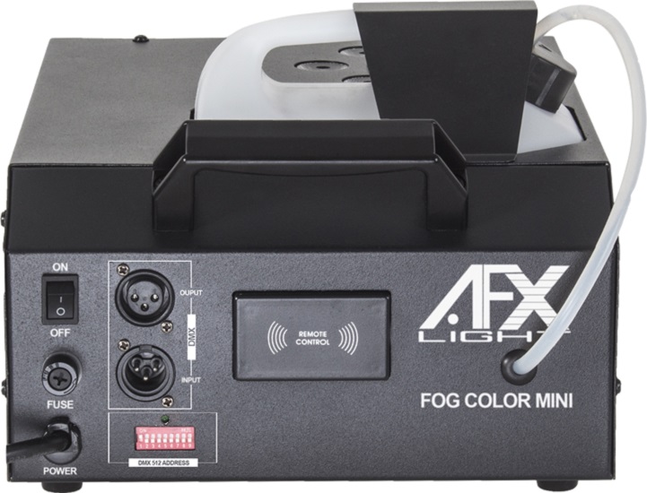 The AFX Geyser is a fog machine with 6 RGB LEDs that combin to create a safe pyrotechnic/geyser effect.