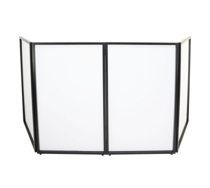 Transform your setup with our decorative screen, designed to conceal the rear side of your DJ equipment and elevate the professional look of your installation. Illuminate your booth by incorporating one of our Ibiza Light LED bars or strips, bringing the white lycra fabric to life and enhancing the appeal of your FACADE-DJ-STAND!