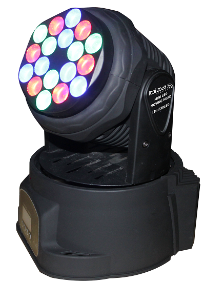The Ibiza Light Mini Beam is a small but powerful moving head light with 18 3W RGB LEDs and a great range of features including electronic dimming, sound activated mode and intelligent temperature control.