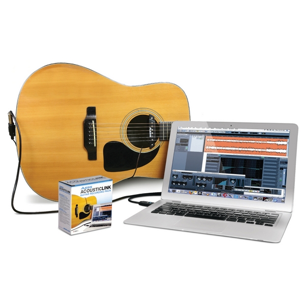Get your performances and ideas into your Mac or PC in seconds with the AcousticLink guitar-recording pack. The AcousticLink contains a no-drill acoustic guitar pickup, a guitar-to-USB cable, and Cubase LE recording software -- everything you need to go from any guitar to virtually any computer!
