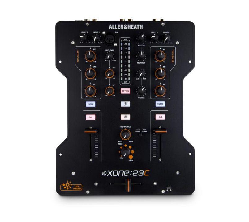 The Allen & Heath Xone:23C is an advanced 2-channel DJ mixer that offers the best of digital DJ systems with professional controls and tools in a compact mixer that provides a pristine, clear sound. The xone 23C is equipped with a 4-channel stereo 24-bit/96kHz soundcard and also offers a plug’n’play X:Link connection for the Xone:K range of midi controllers, which makes it an ideal choice for live performers who would like to combine the power of digital DJing with the hands-on control of a real analogue mixer. This mixer makes a perfect addition to any home DJ setup as well as club and bar installations and is an excellent companion for travelling/mobile DJs.