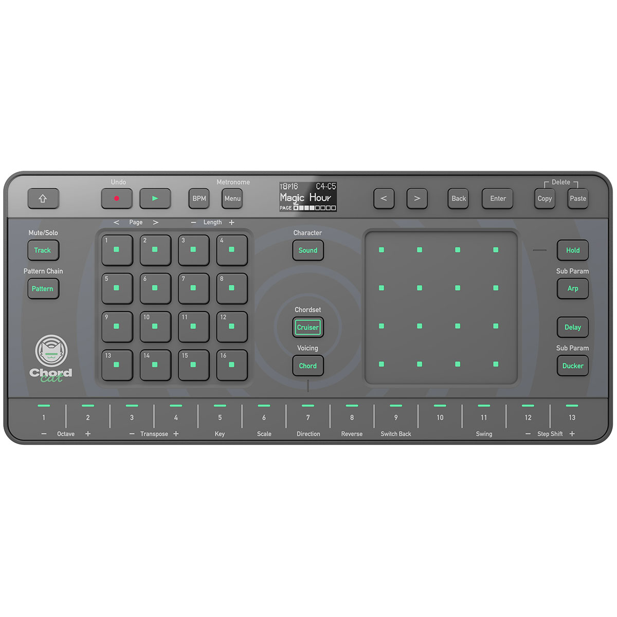 Introducing the AlphaTheta Chordcat: a revolutionary portable groovebox designed to boost your music production journey. With its intuitive features, including the innovative Chord Cruiser, Chordcat empowers musicians of all levels to effortlessly explore fresh chord progressions and transform their ideas into captivating tracks. Packed with an 8-track sequencer, a diverse range of instrument sounds, and dynamic music arrangement tools, this cutting-edge device ensures that your creativity knows no bounds—no matter where inspiration strikes. Unleash your musical potential with Chordcat and bring your ideas to life!