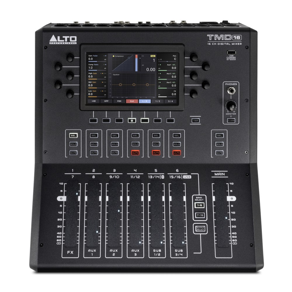 The Alto Professional TMD16 is a powerful yet user-friendly 16-channel digital audio mixer, purpose-built for live sound applications in small venues, rehearsal spaces, event centers, and houses of worship.