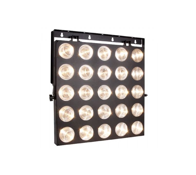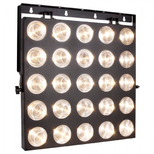 The ADJ Matrix Beam LED is designed as a Blinder/Cyc effect or as a matrix chase effect for stages and mobile productions. This fixture has built-in light chases with the option to create the alphabetic and numeric characters in light via DMX. The Matrix Beam is powered by twenty-five 3-Watt warm white LEDs in a 5x5 panel.