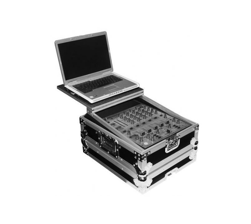 12 DJ Mixer Case with laptop shelf to hold a laptop in place.Ideal for Rane Serato users, hubs can be placed in the back of the mixer.# Features: Patent pending design laptop shelf# Fits any 12 Mixer Case# ATA 300 Style# 9mm laminated plywood# Spring action handles# Easy locking fit and tongue# Stackable powerful ball corners# Industrial strength latches and rubber feet# Dual anchor rivets# Includes mounting hardwareSpecifications:# Exterior Dimensions (closed lid): 21.5 D x 17 W x 10 H# Dimensions of laptop top shelf: 16 W x 14