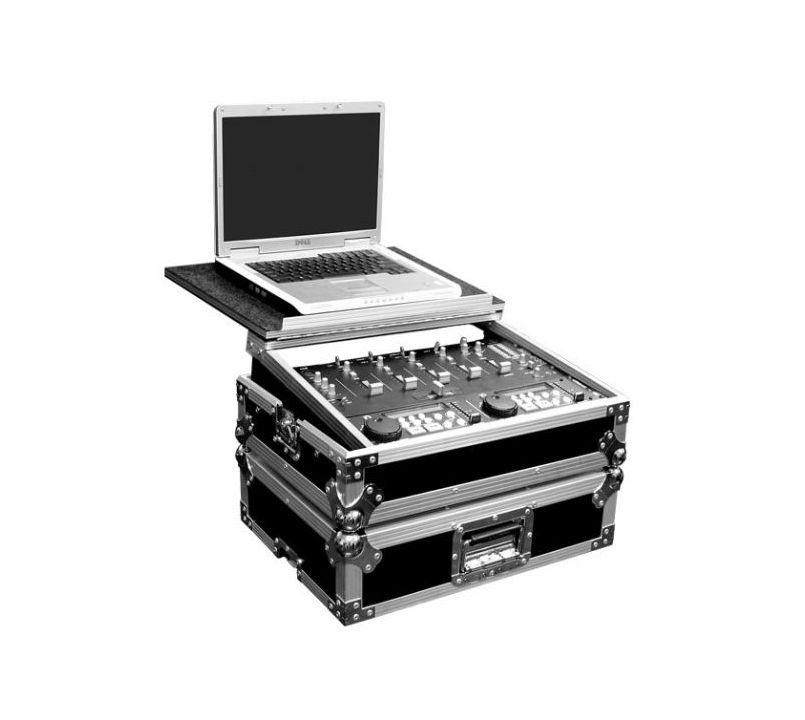 A high quality flight case from Total Impact which allows the rack mounting of a 19 Mixer with a sliding Laptop Shelf feature and removable lid. This is the ideal solution for the digital DJ.