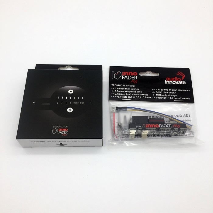 The new Audio Innovate Mini innoFader Pro allows you to turn any DJ mixer or DJ controller into a true scratch powerhouse machine with a wallet-friendly price tag. This Mini innoFader pro comes complete with the Reck IF-30 mounting kit designed especially for the Numark PT-01 portable turntable allowing you to install the Mini innoFader Pro into the PT-01 easily. The mini innofader pro comes set up for the Reck IF-30 straight out of the box so you can easily install the fader as soon as you get it.