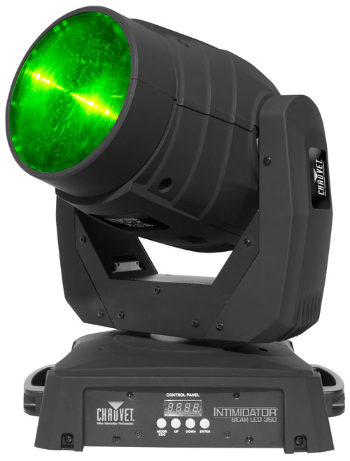 The New Intimidator Beam LED 350 projects a tight, 4-degree, super-bright beam. Complete with an 8-position color wheel, a 5-position fixed gobo wheel with an animation effect, and a 3-facet prism, this light cuts through haze with lightning-fast speed, creating a brilliant shaft of light and defined aerial effects. This fixture can also serve dual roles, by utilizing the frost filter you can attain effective wash effect as well.