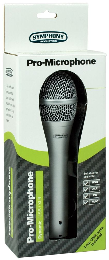 The Symphony Acoustics DCM12 USB/XLR microphone is a truly flexible microphone. It can be used as a standard XLR microphonr as well as a USB device ideal for Pod Casts or Digital DJ Software. It is Ideal for the home or professional DJ and also great for studio work.