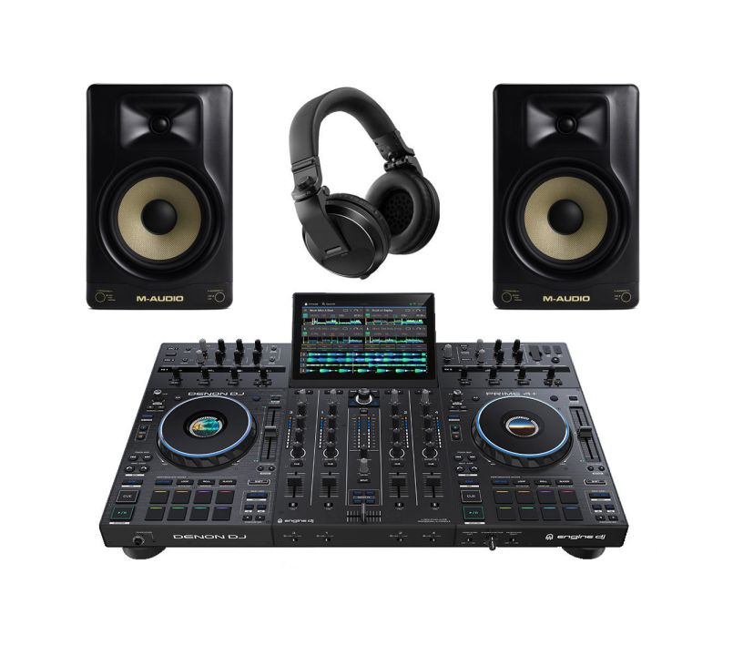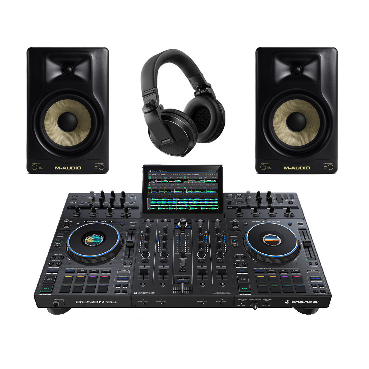 We're excited to announce our newest Denon DJ all-in-one DJ System package, featuring the top-of-the-line Denon DJ Prime 4+ DJ System, along with the high-quality Pioneer DJ HDJ-X5 DJ Headphones and two M-Audio M-Audio Forty Eighty DJ and Studio Monitor Speakers. Our bundle is perfect for DJs who demand the best sound quality and performance. Order yours today and take your DJing to the next level!
