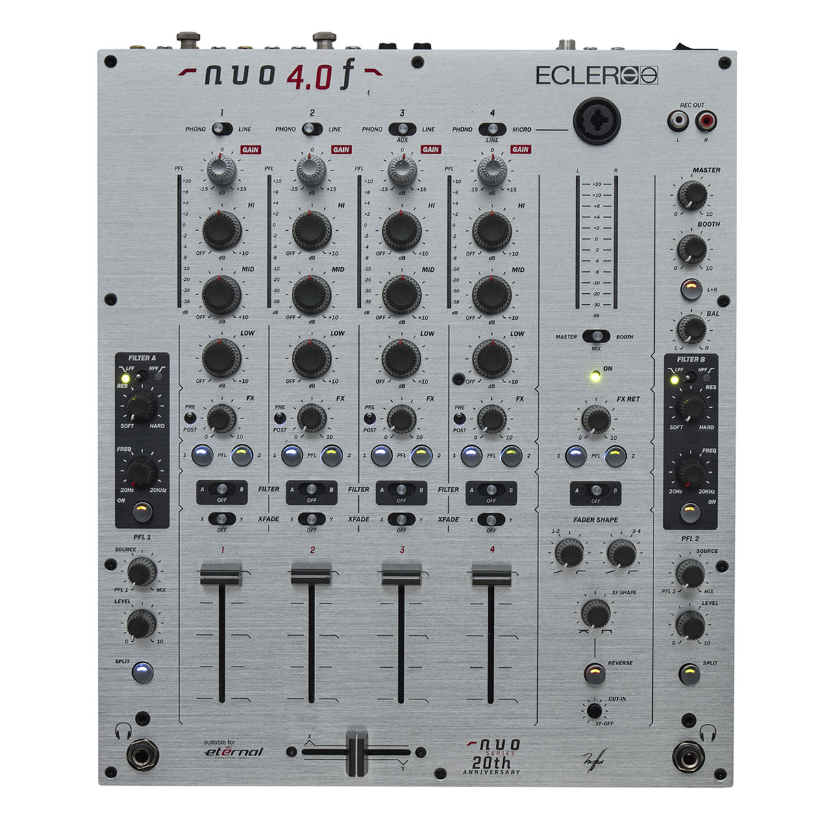 Equipped with two independent PFL systems, the NUO 4.0F enhances the experience of back-to-back DJ sets, allowing two DJs to pre-listen to any channel simultaneously, with split mode functionality for precise cueing. It's meticulously crafted for turntablism and advanced scratching, offering extensive customisation options for faders and the renowned ETERNAL magnetic crossfader.