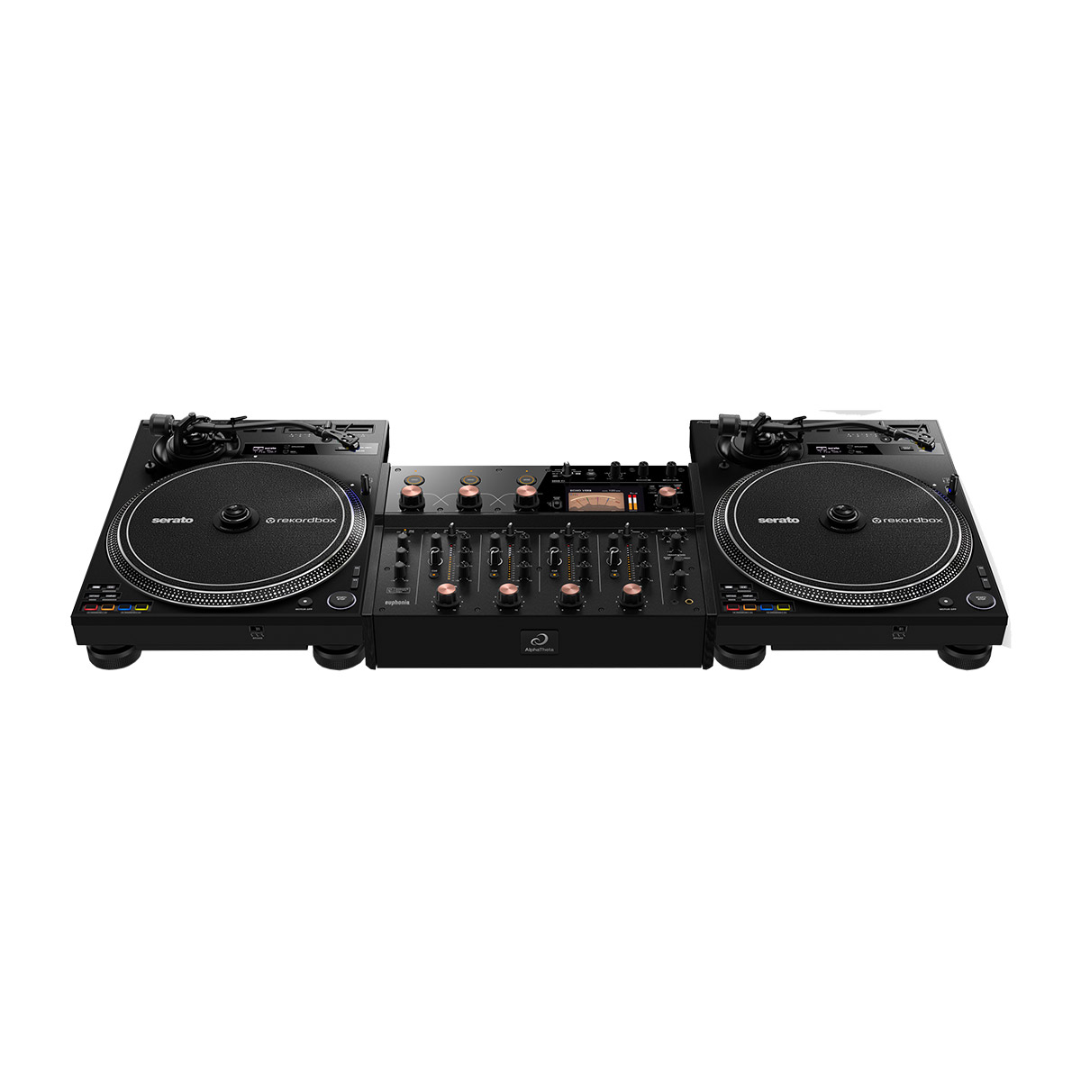 In this package, immerse yourself in the revolutionary 4-channel AlphaTheta Euphonia Rotary Mixer, paired with the renowned and feature-packed Pioneer DJ PLX-CRSS12 Turntable.