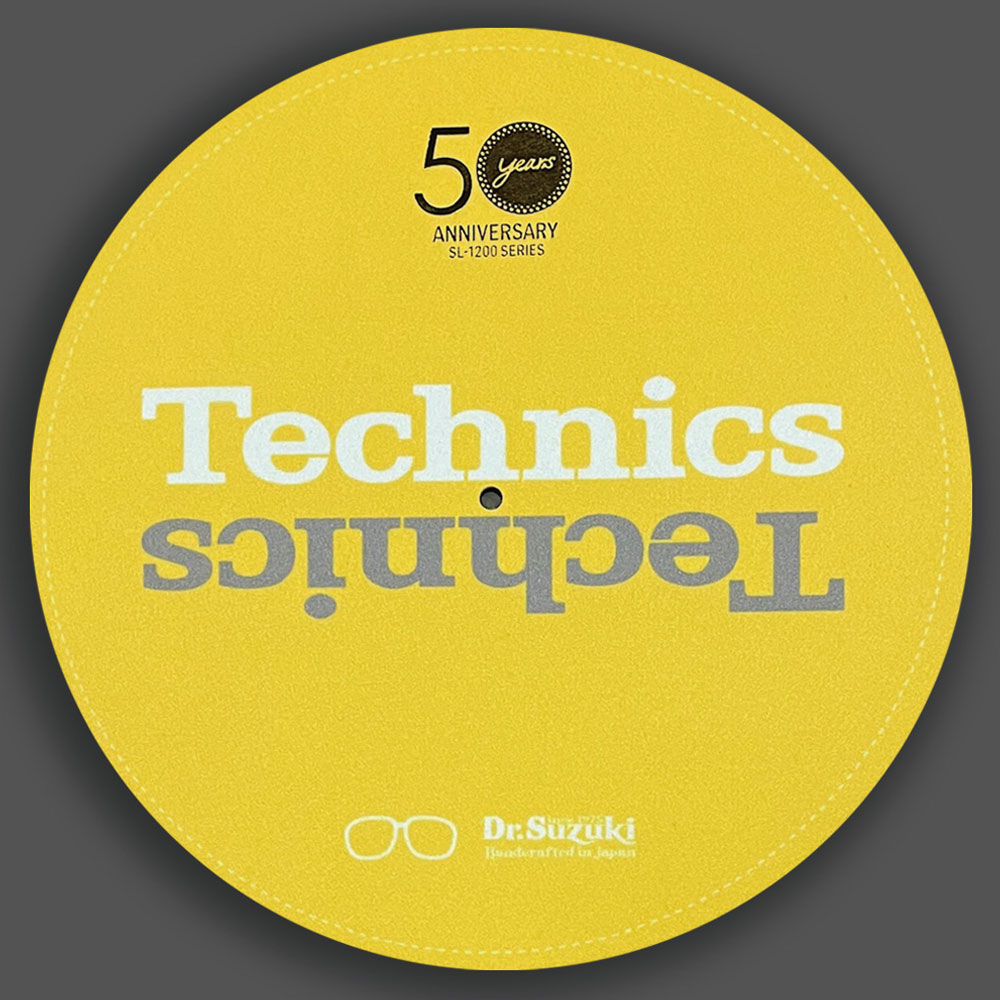 Introducing the 50th Anniversary Limited Edition slipmats from Technics in collaboration with Dr. Suzuki! These high-quality slipmats are inspired by the launch of the SL-1200 50th anniversary edition Technics turntables.