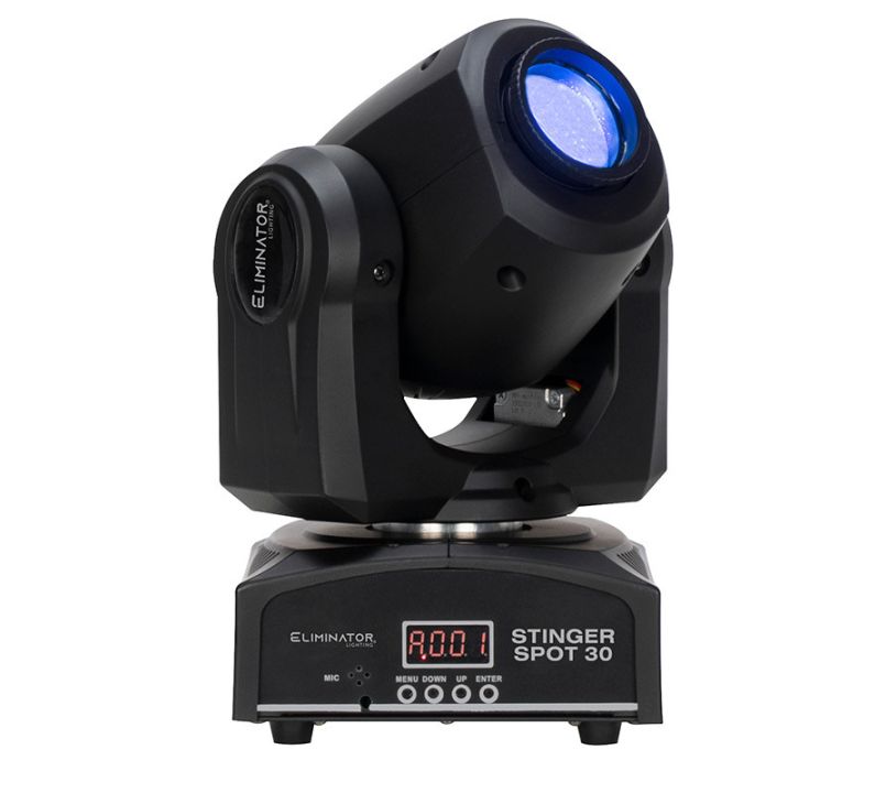 Meet the Eliminator Lighting Stinger Spot 30, a compact Moving Head that has a clean 30-Watt LED source and superior optics. Because of its smaller size and low weight, it is suitable for mobile performers, small clubs and bars, roller rinks, bowling alleys, and any transportable production.