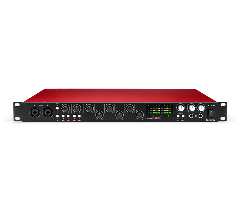 - Eight Scarlett mic preamps with plenty of even gain, exceptional headroom, low noise and minimal distortion