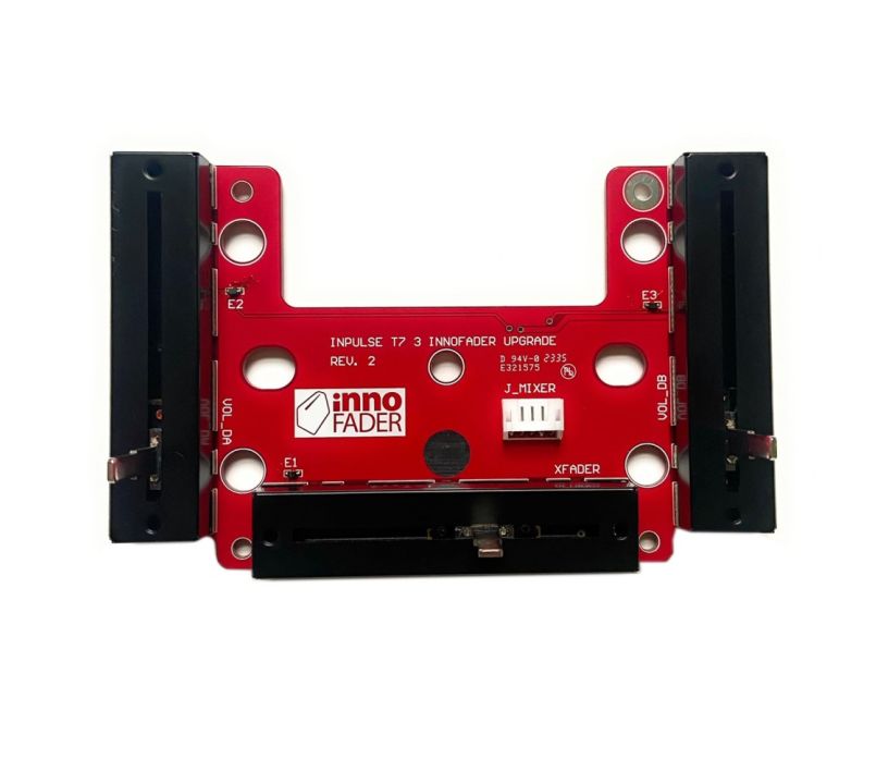 The innoFader Mini Hercules T7 Board turns your Hercules T7 into a scratch-optimised beast. Experience the accuracy and control of three small innoFader Plus faders, easily pre-installed on a soldered board that fits perfectly into your Hercules T7 without additional modifications or soldering.