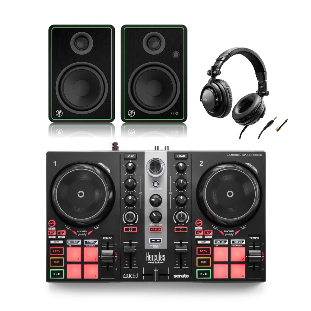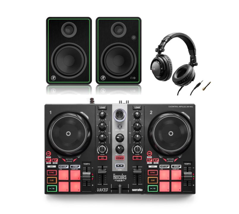This beginner Hercules DJ equipment bundle is perfect for new and aspiring DJs thanks to the range of high-quality functionalities and controls that allows you to perform with creativity while integrated ‘Light Guides’ work to help you beatmatch so you’ll always be time, the package also includes a range of tutorial videos that teach you how to DJ as you play. This package consists of an Inpulse 200 MK2 2-channel DJ controller as well as a pair of Mackie CR4-X 4-inch loudspeakers plus a set of HDP DJ M.40.1 DJ headphones; this provides you with all the gear required for a complete DJ setup.
