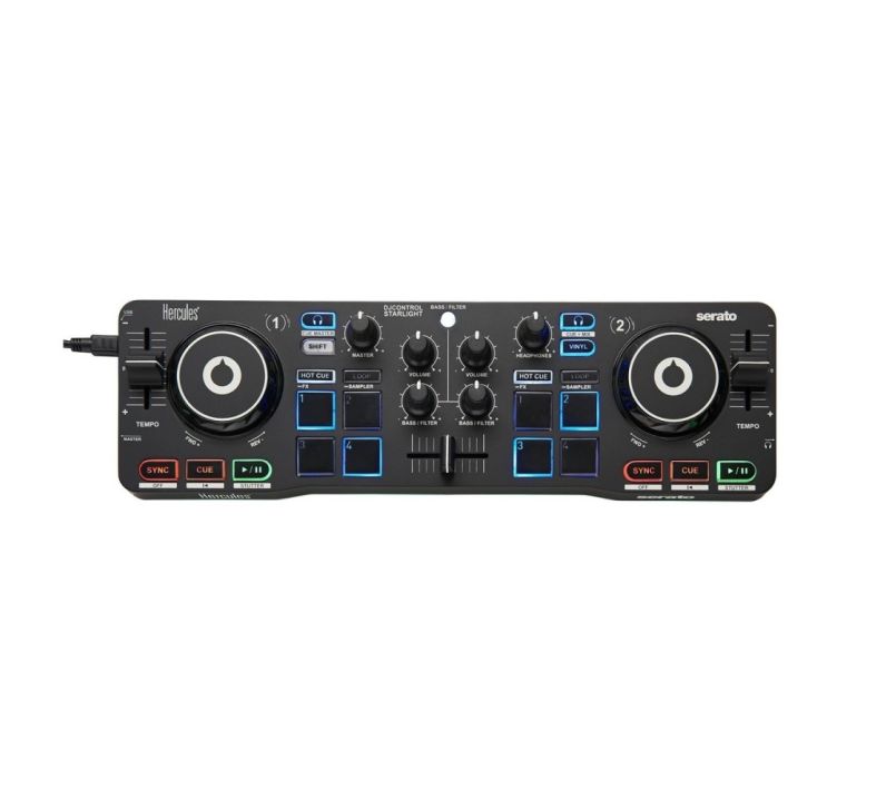 The Hercules DJ Control Starlight is a two-channel DJ controller that is ultra-compact and is ideal for mixing on the move.