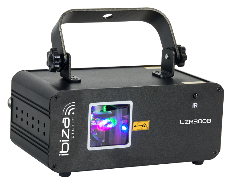 The Ibiza Light LZR300B is a 300mW blue graphic laser that is equipped with a 532nm blue laser diode and comes with DMX controllability as well as 21 pre-programmed light shows.