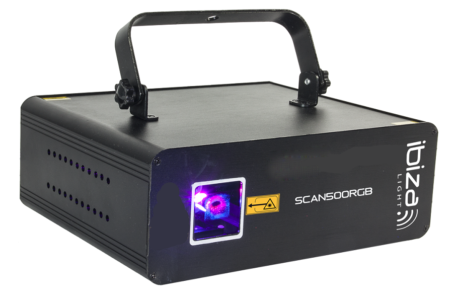 The Ibiza Light Scan 500 RGB is a highly-powerful animation laser that is equipped with three laser diodes alongside a wide variety of different patterns and projections and can be used in a range of operational modes.