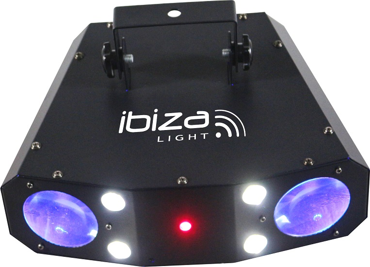 The Ibiza Light Combo-3IN1 disco light works as three lighting effects all in one great unit. The light comes with a white strobe effect, a red and green laser, as well as an RGBW, LED moonflower lighting effect, all three produce vibrant beams that light up the room perfectly.
