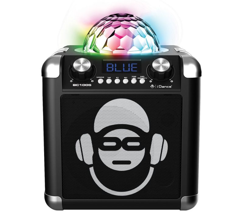 The iDance Party Cube is a portable Bluetooth speaker that is Karaoke compatible. The set includes a wired microphone that works great in karaoke parties at birthdays, barbecues and more.