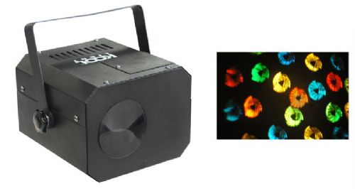 Sound to light activated dish with a slow constantly rotating gobo wheel.Lamp 12v 50watt reflector type.