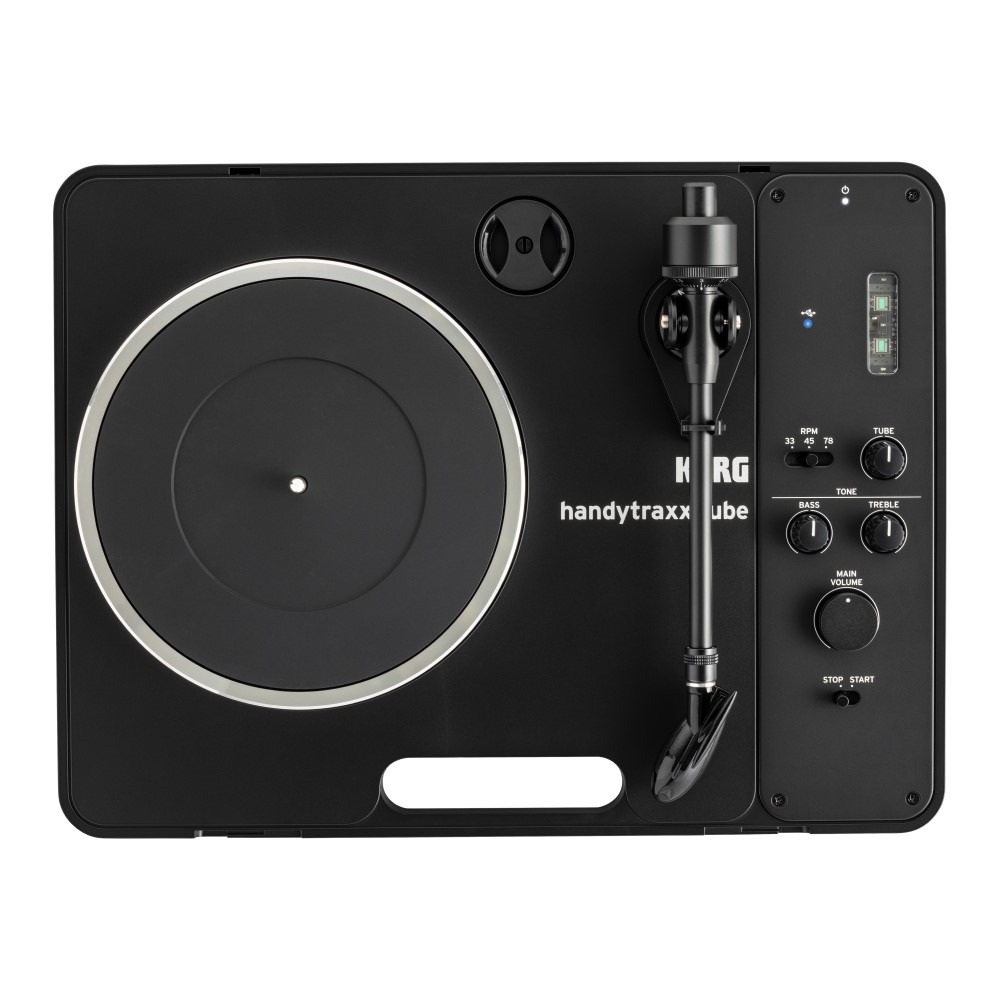 In an era dominated by digital music, the handytraxx tube bridges the gap between modern ease and vintage charm. With built-in stereo speakers, battery operation, and a portable design, it brings warm analog sound wherever you are. Its aluminium die-cast platter ensures precise rotation, while the balanced tonearm and integrated phono amp—powered by Korg's Nutube technology—provide superior sound quality in a compact form.