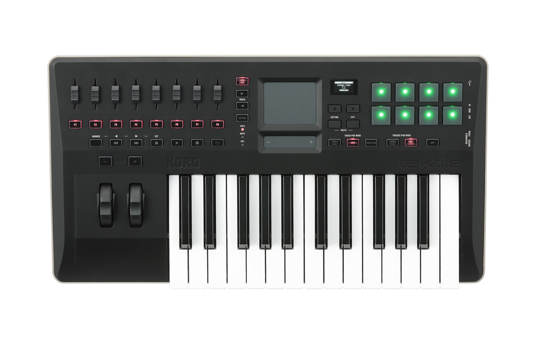 Taktile controller keyboards bring together numerous premium features found across the extensive Korg range of Kaoss and synth products, from a Krome derived keybed to the touch pad inherited from the Kaossilator and a powerful arpeggiator that includes rhythm patterns. Taktile 25 also supports all major DAW/sequencer software, including Cubase 7, Live 9, Garage Band 10, Logic Pro X, Pro Tools 10, SONAR X2, Digital Performer 8.