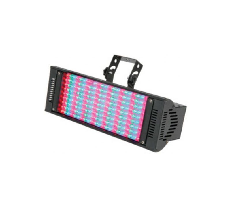 The LED colour flash system contains 198 super bright 10mmØ LEDs which produce a variety of lighting effects such as strobe and mixed colours via 3 modes of operation: stand alone, DMX and sound active. Each colour (red, green, blue) can be manually selected via DIP switches.