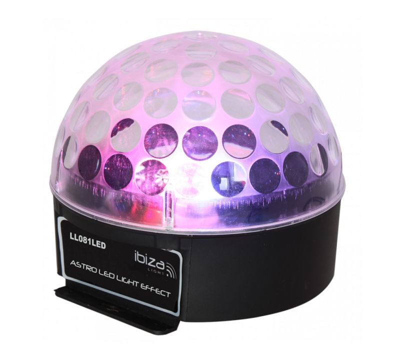 The Ibiza Light ASTRO1 is a popular RGB LED lighting effect that produces multiple beams of vivid light that rotate around the room thanks to the spinning dome and three 3w LEDs. This disco light effect is perfect for house parties and smaller sized rooms.