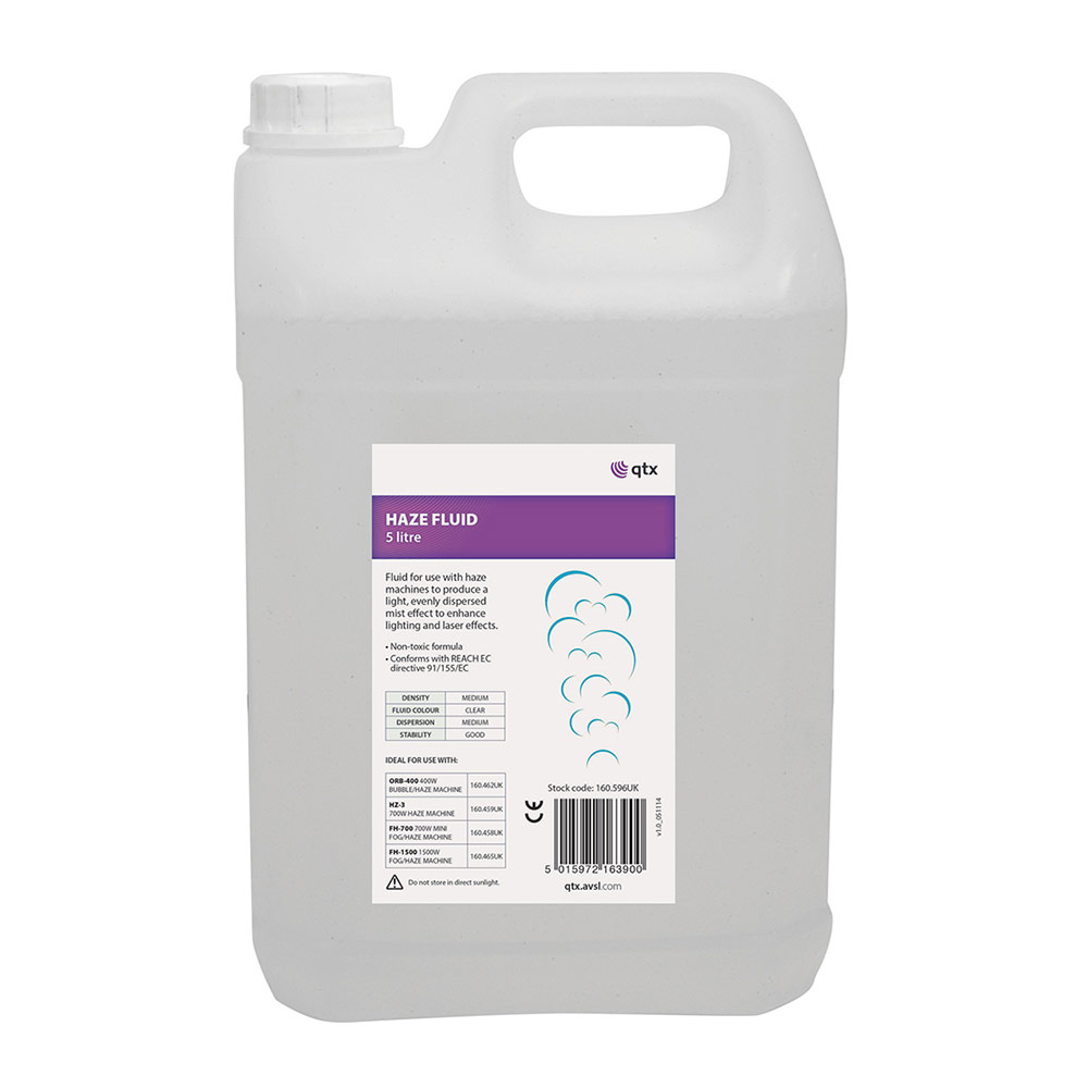 Transform your light and laser shows with the QTX Haze Fluid Eco! This non-toxic fluid creates a captivating, evenly dispersed mist that enhances visual effects like never before. Compatible with all haze machines, it's the perfect addition to add atmosphere to your event and leave your audience in awe.