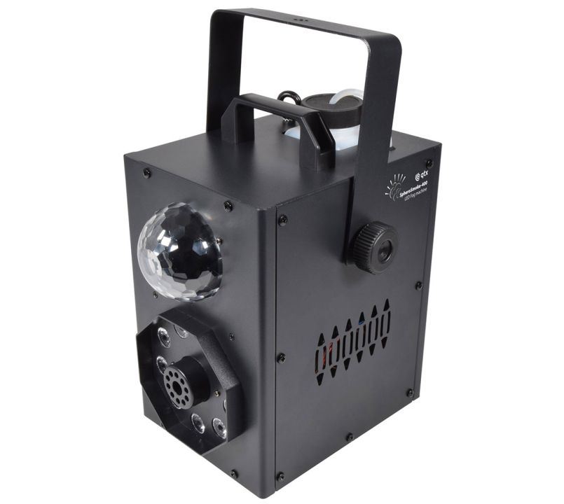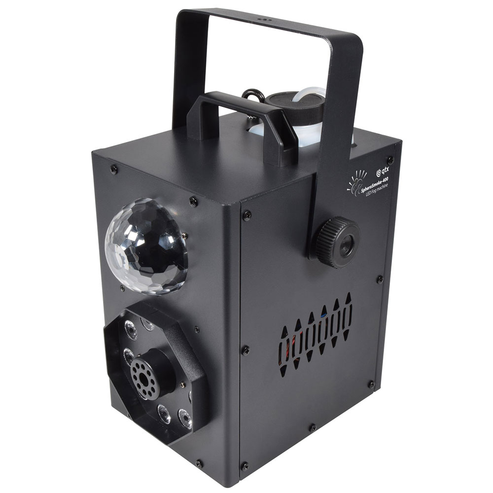 The QTX SpheroSmoke is a compact and portable LED Fog Machine that includes a regular fog machine and two jaw-dropping PAR wash and disco ball light effects. The 400W fogger produces around 2500 cu.ft/min of fog, sufficient to cover smaller rooms and venues quickly.