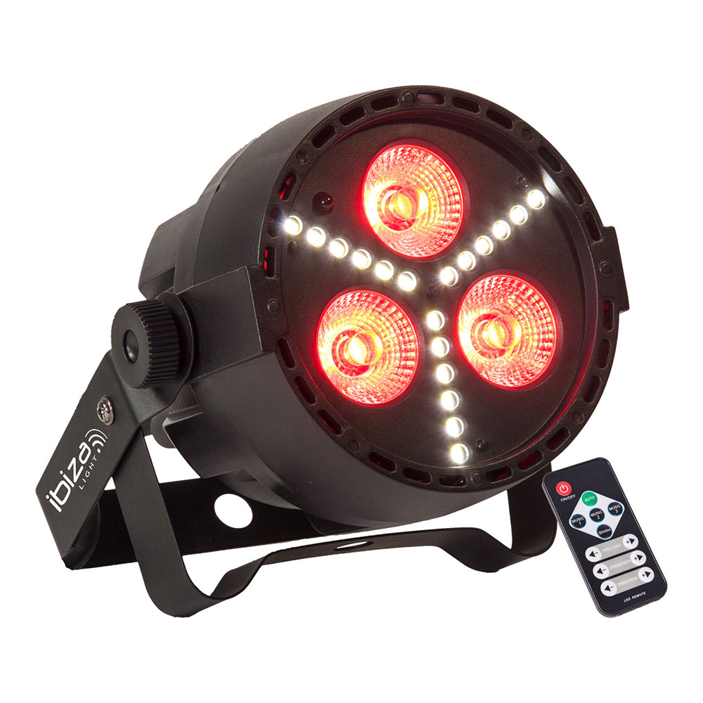 The Ibiza Light PAR-MINI-STR is a compact 4-IN-1, DMX-controlled RGBW PAR CAN with a high-power SMD LED strobe fitted to the centre.