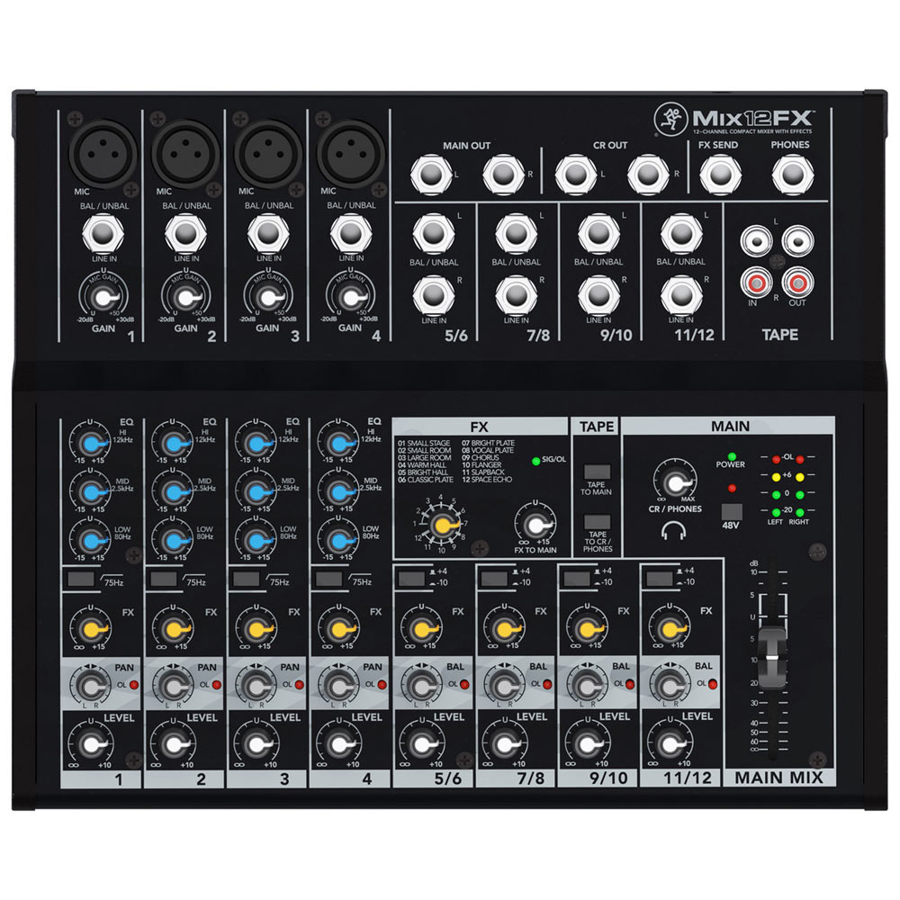 Mackie Mix12FX 12-channel Compact Effects Mixer The Mix12FX 12-channel compact effects mixer is reliably rugged, with the proven quality you expect from Mackie, the world leader in compact mixer design.