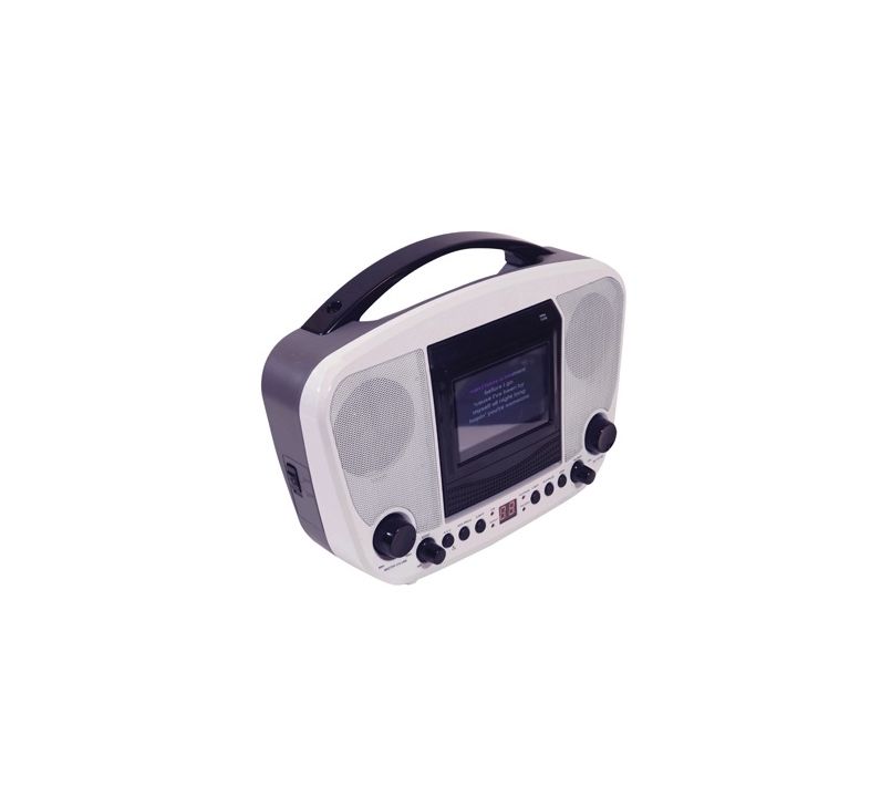 The Mr. Entertainer KAR122D is an advanced portable karaoke player that comes equipped with Bluetooth connectivity alongside an integrated 3.5-inch LCD display so you can easily view the lyrics to your tracks.