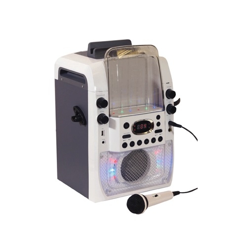 The Mr Entertainer KAR123 is a karaoke machine that comes equipped with a multi-coloured LED water lighting effect which dances along to your music as well as Bluetooth connectivity.