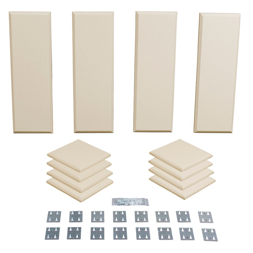 The Primacoustic London 8 room kit in beige acoustically treats noise issues such as flutter echo, standing waves and primary reflections.