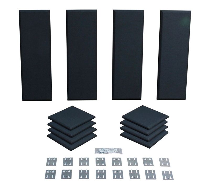 The Primacoustic London 8 room kit in black acoustically treats noise issues such as standing waves, flutter echo and primary reflections, and is suitable for rooms up to 100 ft² (9 m²).