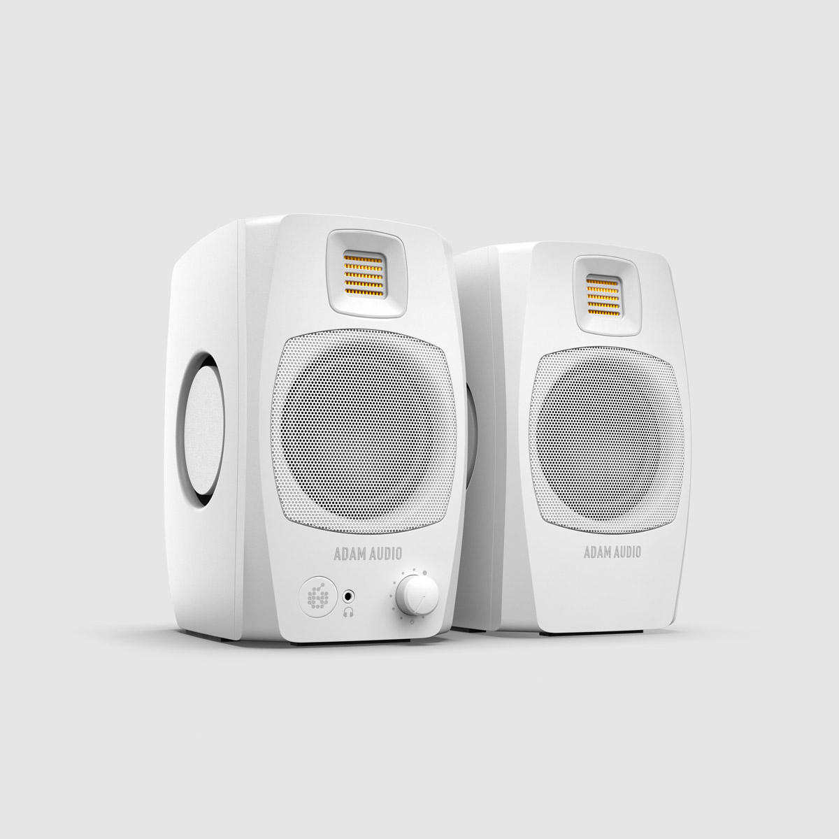 The Adam Audio D3V in white is the ultimate fully active desktop monitoring speaker system designed to deliver exceptional sound quality for songwriters, producers, and music enthusiasts. This state-of-the-art system, available in elegant white or sleek black editions, is equipped with iconic golden ribbon tweeters and 3.5" aluminium woofers driven by powerful 80W amplifiers.