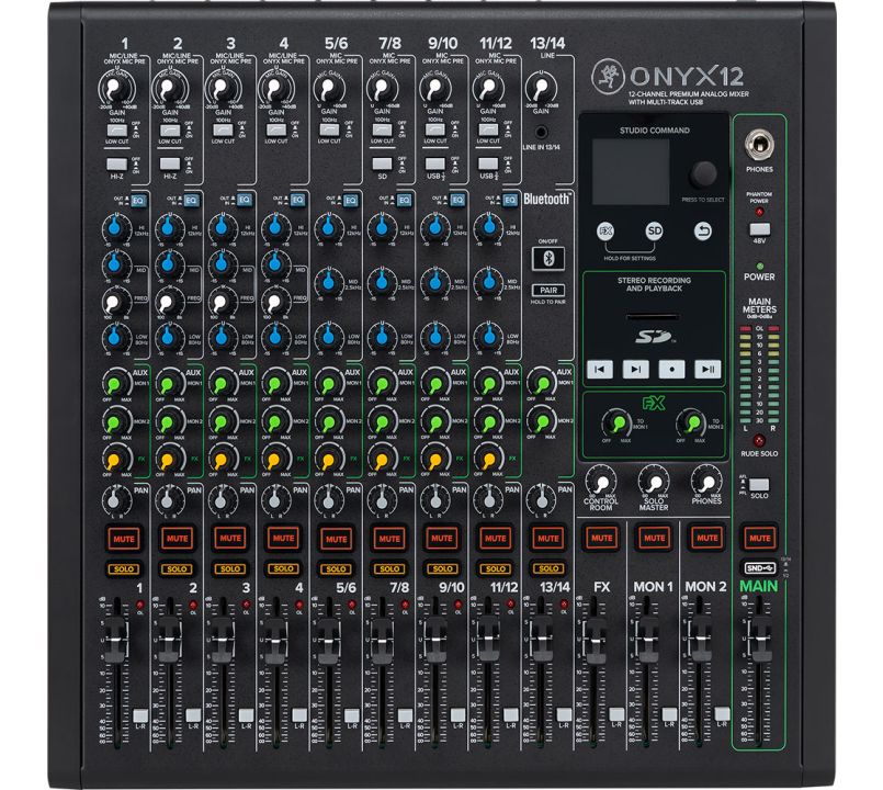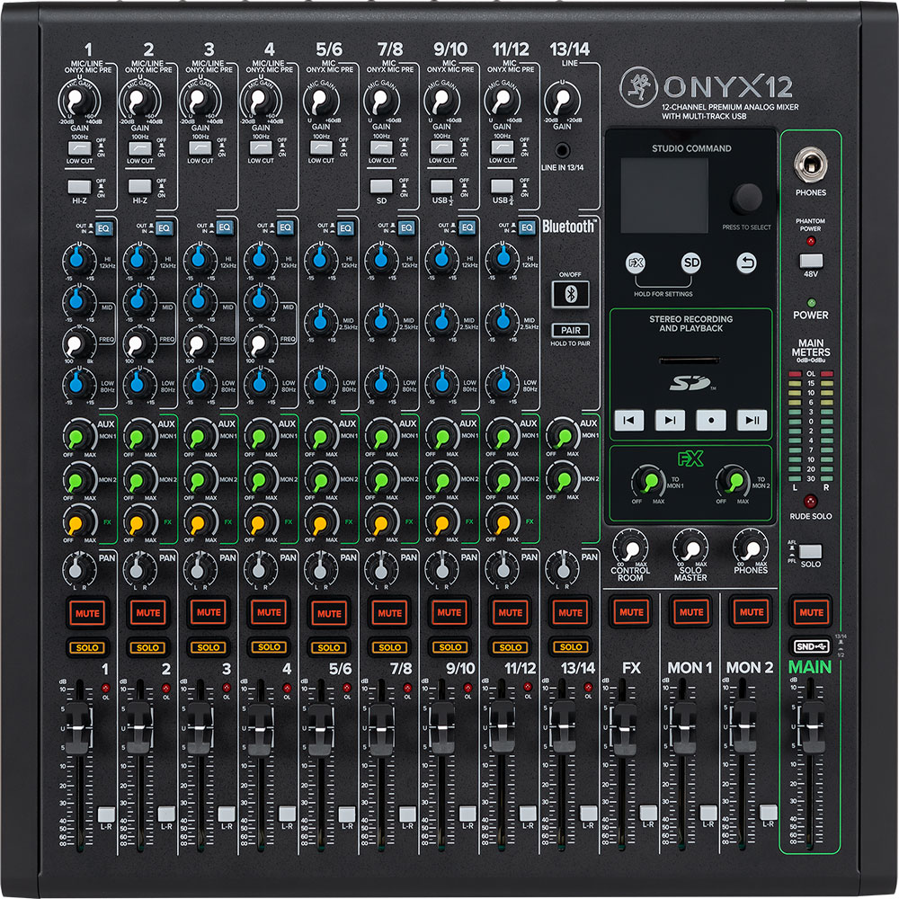 Master your sound. The Onyx 12 analog mixer provides unmatched sound quality, multi-track recording and a host of built-in effects make it perfect for live audio, home recording, or professional systems.