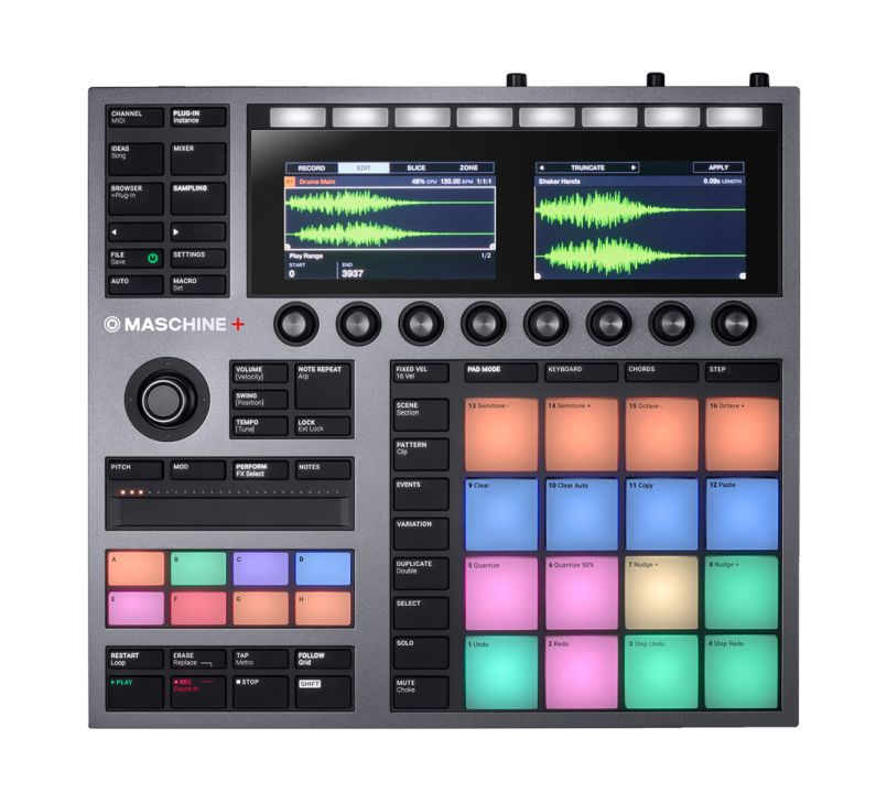 Introducing the Native Instruments MASCHINE+ which allows for deep integrative standalone workflow. Arrange, sample, create beats and melodies, perform on stage or in the studio, directly from this feature-rich standalone unit. Included with the controller unit is MASCHINE+ Selection which is a library of industry-leading sounds, instruments and effects, including well-known MASCHINE drum and bass synth plugins and effects.