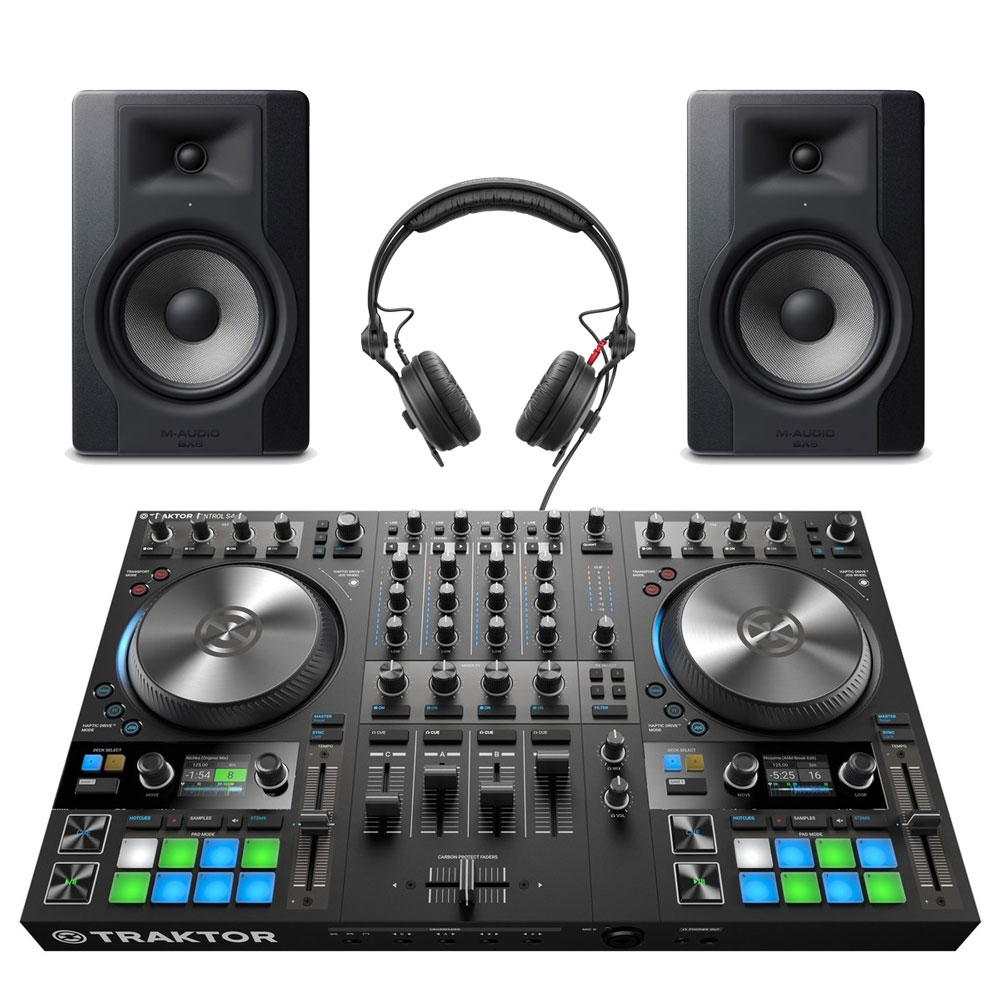 This complete DJ equipment bundle includes everything required for a full digital DJ setup including a Native Instruments Traktor S4 Mk3 4-channel DJ controller, a pair of M-Audio BX5 D3 5-inch active speakers and a set of Sennheiser HD 25 MK2 professional monitoring headphones, as well as a set of cables required to get your fully connected. This package deal is ideal for aspiring and professional DJs looking for a creative mixing solution and offers many high-quality functions and features that allow you to seamlessly mix like a pro.