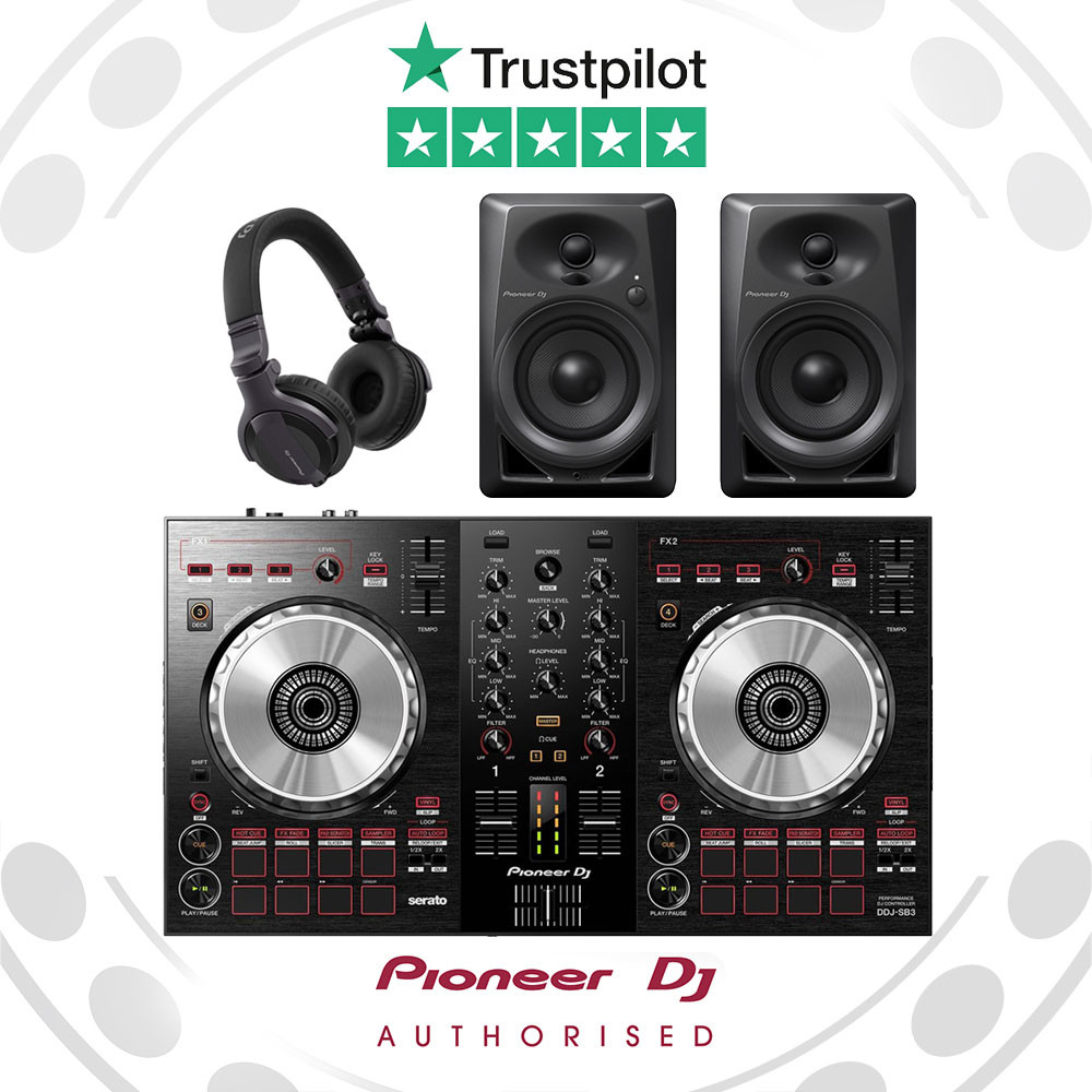 Become a DJ with the help of one of the leading DJ software programs in the industry, Serato DJ. This Next Generation Complete Serato DJ bundle includes the DDJ-SB3, a pair of customisable Pioneer HDJ-CUE1 DJ headphones and a pair of the best-selling 4-Inch Monitor speakers, the DM-40.