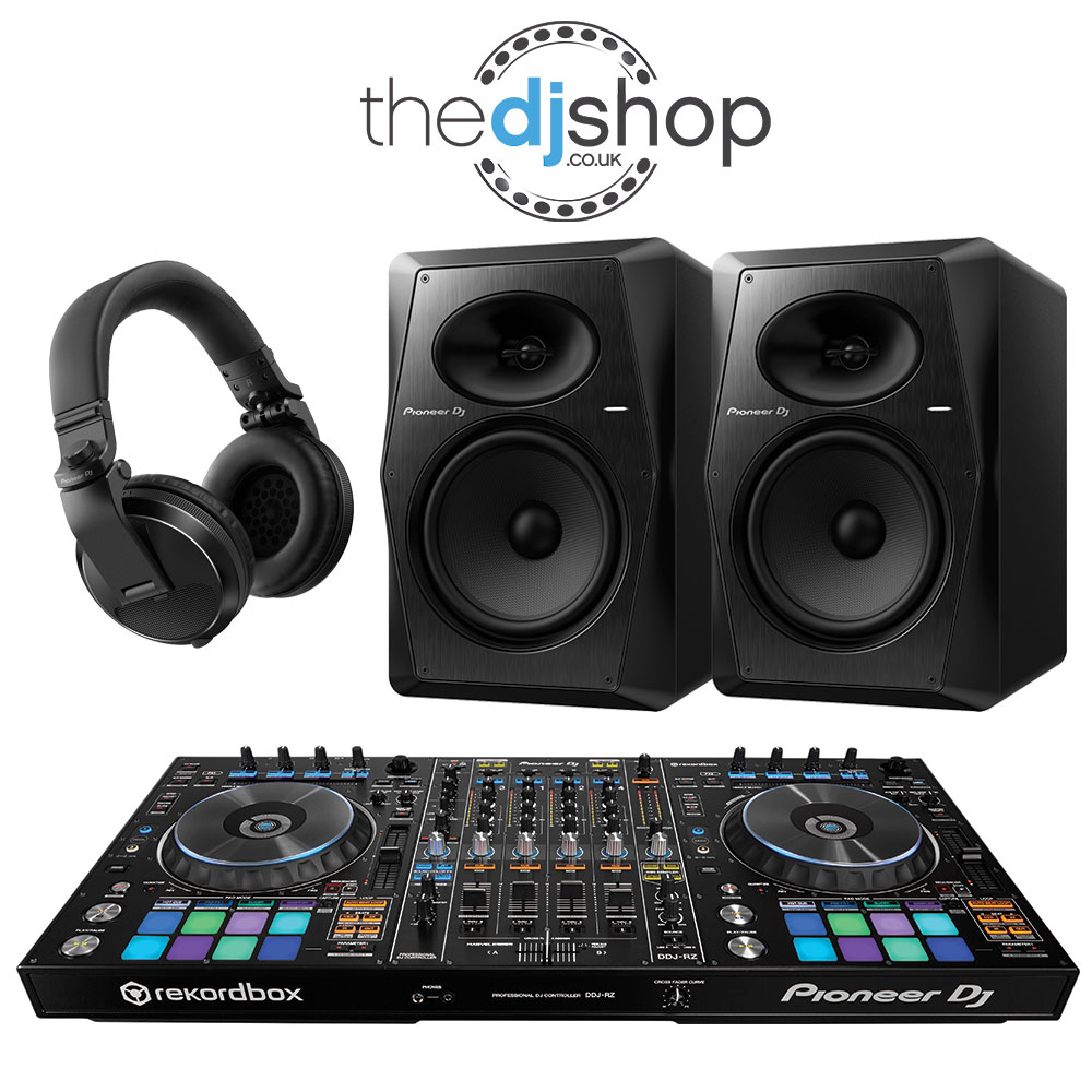 Our Pioneer DDJ-RZ bundle deal comes with VM-80 8" Active DJ Monitors and HDJ-X5 Pro DJ Headphones, so you can prep for gigs and transition to a familiar club-layout with ease.