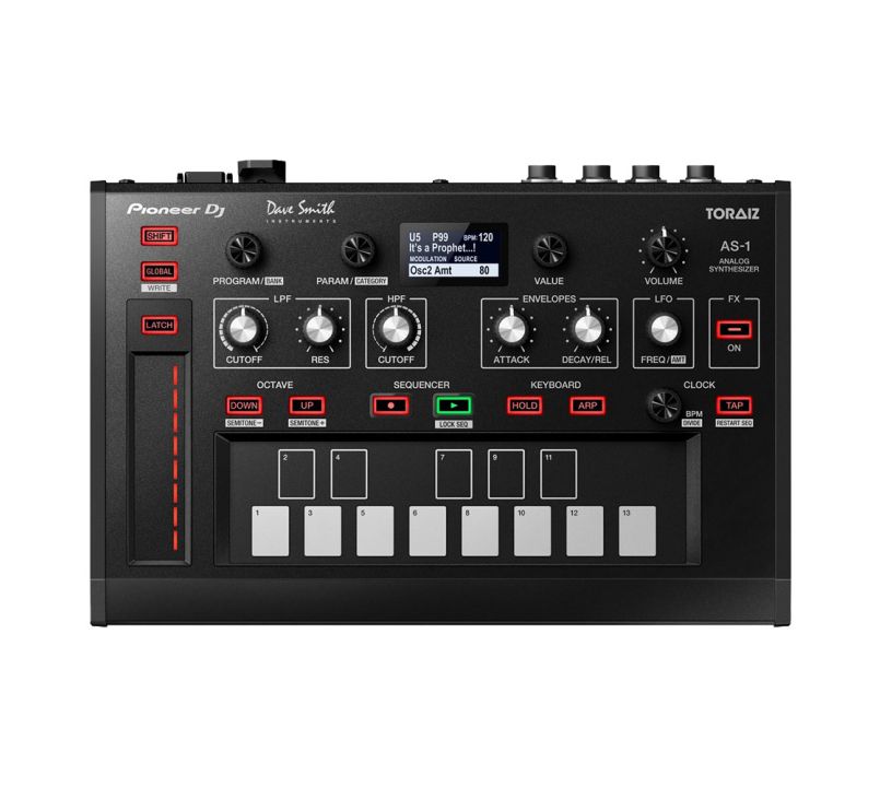 Pioneer TORAIZ AS-1 is a brand new analogue synthesizer for both studio and stage use. Built in collaboration with Dave Smith Instruments, this synthesizer borrows circuitry and effects from the Prophet-6 synth and combines then with all new features, such as an arpeggiator, step sequencer and touchpad-style keyboard to create a beautifully original analogue synth that can create powerful basses and bright, vibrant leads.