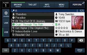 Faster browsing with Qwerty KEYBOARD and KEYWORD SEARCH The Browse function is speedier than ever, with the ability to call up a Qwerty keyboard and search for keywords, and scroll using the touch screen or large rotary dial. Plus DJs can choose how they view tracks: list, artwork, or custom view. |