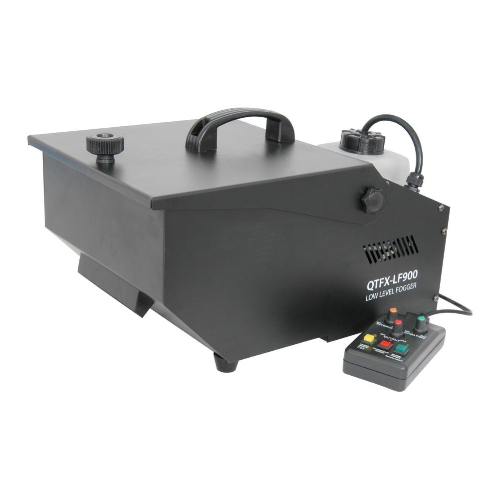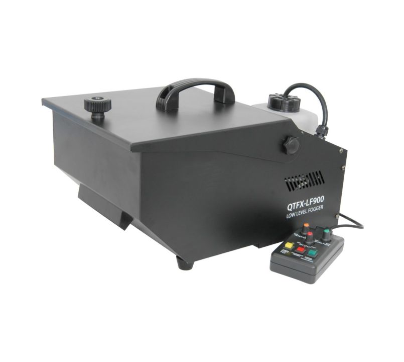 A compact 900W low-level fog machine uses standard smoke fluid which runs over a tray of ice to produce a heavy low level fog that creeps along the floor.