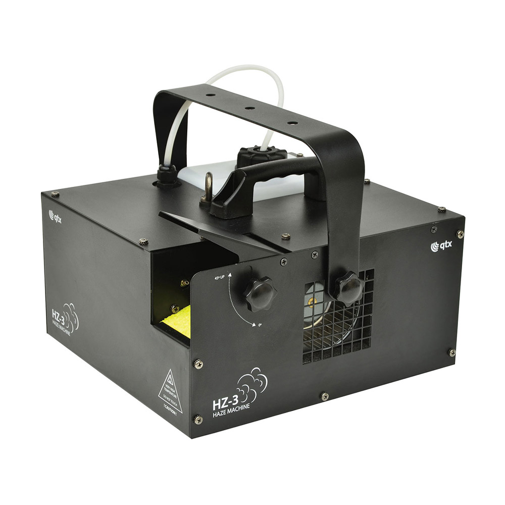 QTX Hazer HZ-3 700W is an excellent haze machine that now features a range of upgrades. The new and improved 700W heater guarantees all fluid is vaporised rapidly while also decreasing the warm up time. The Hazer HZ-3 now hosts a LED digital display for use during stand-alone mode alternatively a timer remote or 2 channel DMX can be used for automatic operation. Brilliant for professional installations.